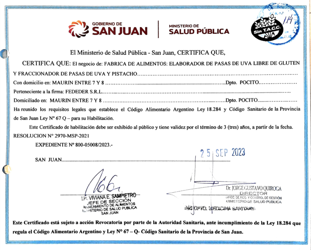 Nuestra planta Industrial tiene las mejores certificaciones de calidad, nuestros controles son exhaustivos, con un equipo de profesionales a cargo. Nuestras marcas están homologadas para la industria alimentaria, EXPORTAMOS a Estados Unidos, Canadá, Brasil, Uruguay, Chile, Colombia, España, Italia, Holanda.